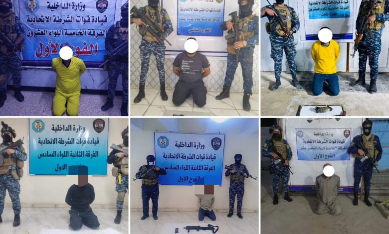 استكمالاً للعمليات الأمنية التي تجريها قطعاتنا لتعزيز الأمن والاستقرار وتنفيذ مذكرات القبض القضائية والحفاظ على السلم الاهلي والأمن المجتمعي وتنفيذ مذكرات إلقاء القبض القضائية ، تمكنت قطعاتنا الأمنية في الفرقة( الثانية، الخامسة، الالية شرطة اتحادية) بإسناد الأجهزة والوكالات الأستخبارية ومن خلال اجراء الممارسات الأمنية من اعتقال (١٤) متهمين وفق مواد قانونية مختلفة بينهم متهمين اثنين بجرائم “السرقة” اقدما على سرقة اغطية “المجاري” من الشوارع والازقة، واخر بالمواد المخدرة وذلك ضمن مناطق (الكاظمية، الطوبچي، الغزالية، حي العامل، الشرطة الخامسة، الشاعورة، الشعب، مدينة الصدر، الدسيم، العماري) بجانبي الكرخ والرصافة.
