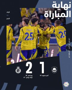 بهذا الفوز، رفع النصر رصيده إلى 38 نقطة ليتقدم مؤقتًا للمركز الثالث، متفوقًا بفارق نقطة عن القادسية الذي يواجه الفتح غدًا الجمعة. أما الرائد، فظل في المركز الـ15 برصيد 14 نقطة، مبتعدًا عن منطقة الهبوط بفارق الأهداف فقط عن العروبة.